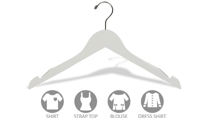 These sturdy, well-constructed hardwood hangers feature a space-saving flat body, two carefully crafted notches for the option of hanging straps, rubber strips and a polished chrome countersunk hook. Finished with a double coating of lacquer to prevent splintering, these high quality, low cost hangers have been manufactured to last you a lifetime. 202292
